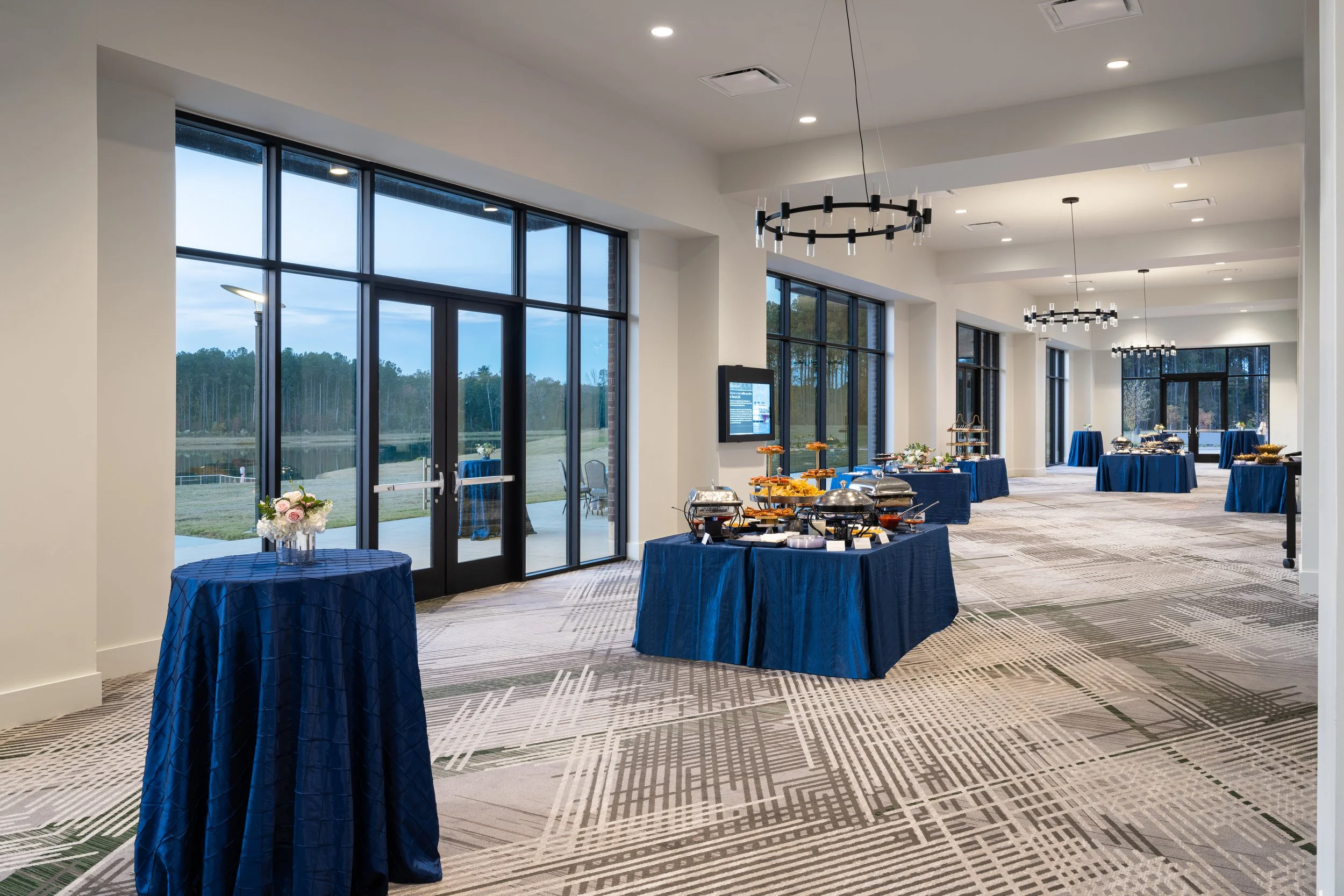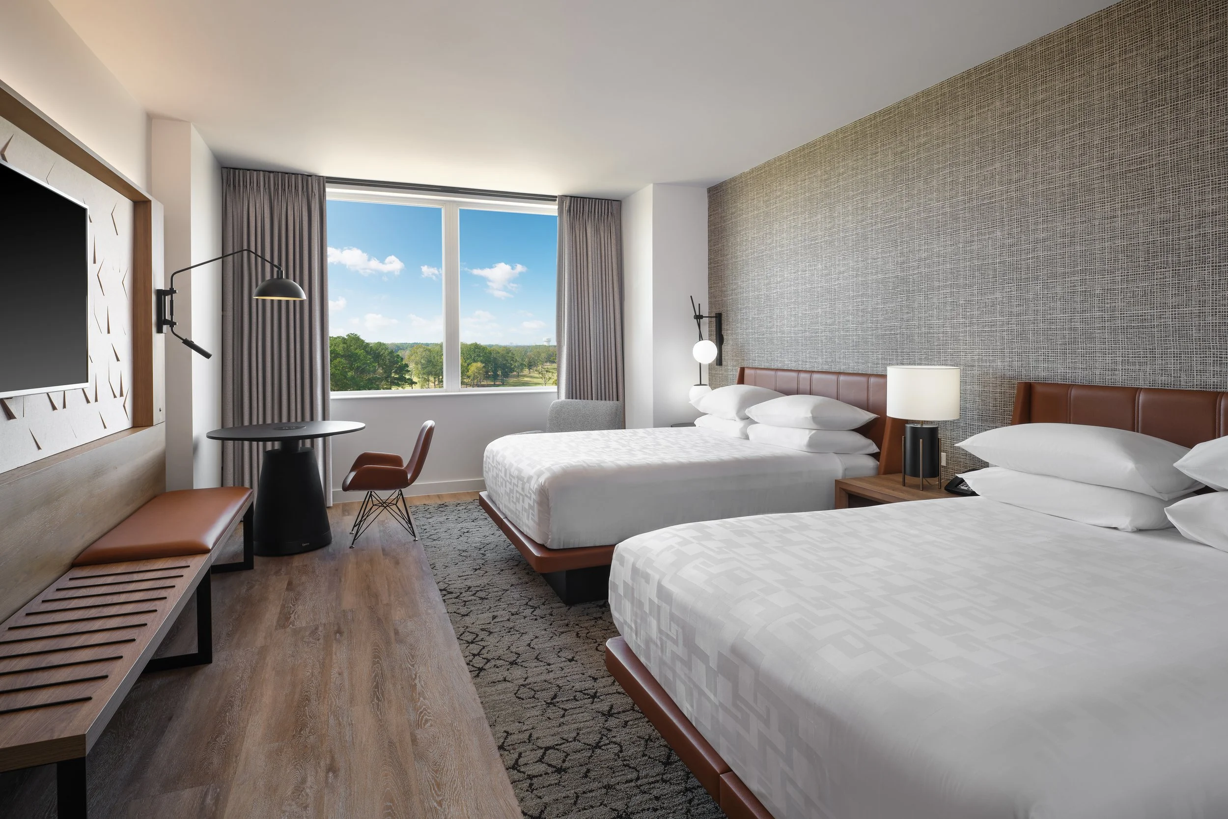 The project features 25,000 square feet of flexible meeting and conference space, complemented by a variety of guest-focused amenities including a full-service restaurant, wine bar, cooking school, spa, golf pro shop, and a signature 19th-Hole Bar overlooking the course. Outdoor amenities include a rooftop bar, resort-style swimming pool, and poolside bar, creating a vibrant social atmosphere for guests and visitors alike.